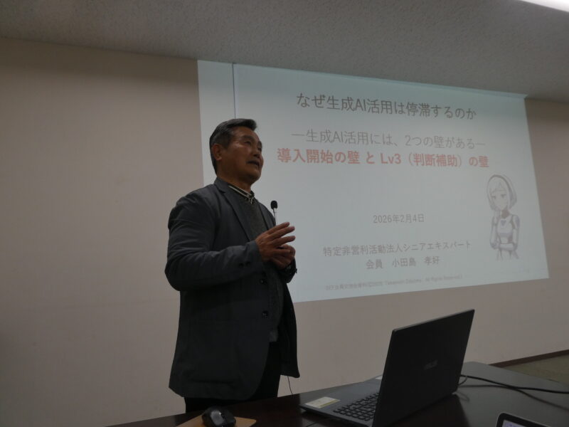 理事会後、2月度会員交流会を開催しました。寒い中にも関わらず、久しぶりに20名を超える23名の正会員、準会員の参加(内2名はリモート参加)を得る事が出来ました。Special Speechを正会員の小田島氏にお願いし、氏が直接感じている生成AIの導入の難しさについて、話を聞く事が出来ました。生成AI技術の活用は、今世界中で華々しく広がっている様に見えますが、実際にそのサポートをしている技術者が感じる、世間の印象とちょっと違った感覚の話でした。皆さん非常に興味を持って聞いていただけたように思います。その後軽い飲み物と軽食を共にしながら、しばし会員間の交流を図り、楽しい一時を過ごしました。